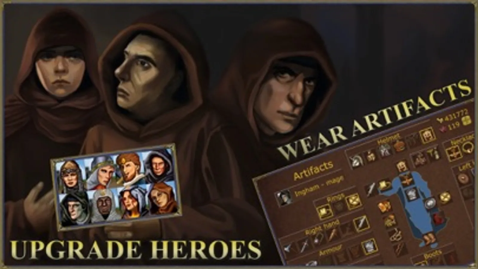 Choose one of the 8 heroes. Put on the most powerful artifacts. Improve their might and magic, war and money mastery on the battle arena. Unlock new warriors, from Knight and Archer to Champions and angel. Keep ready the powerful spells from magic book that can burn the enemy in a matter of seconds or give super strength to your own troops.