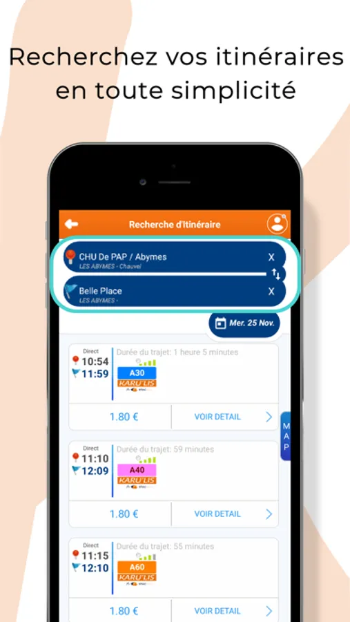 Vous connaissez votre destination mais ne savez pas comment y aller ? Avec votre application KARULIS, calculer votre itinéraire et découvrez en combien de temps vous arriverez à votre rendez-vous !