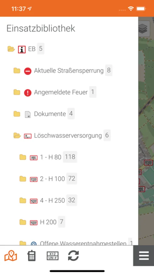 Die Einsatzbibliothek zeigt alle Ihre einsatzrelevanten Objektinformationen georeferenziert – von Hydrantenstandorten über Feuerwehrpläne bis hin zu Aufstellungsräumen und beliebige allgemeine Informationen wie Standardeinsatzregeln, Telefonlisten, Waldrettungspunkte etc.
