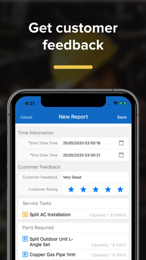 Update service reports and get customer feedback on the spot. Get the customer's signature right on your device and provide a smooth customer experience from beginning to end.