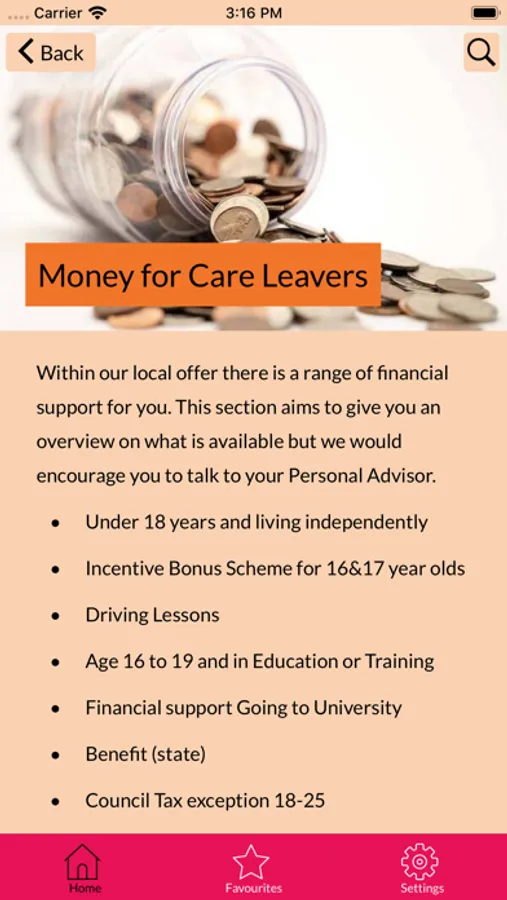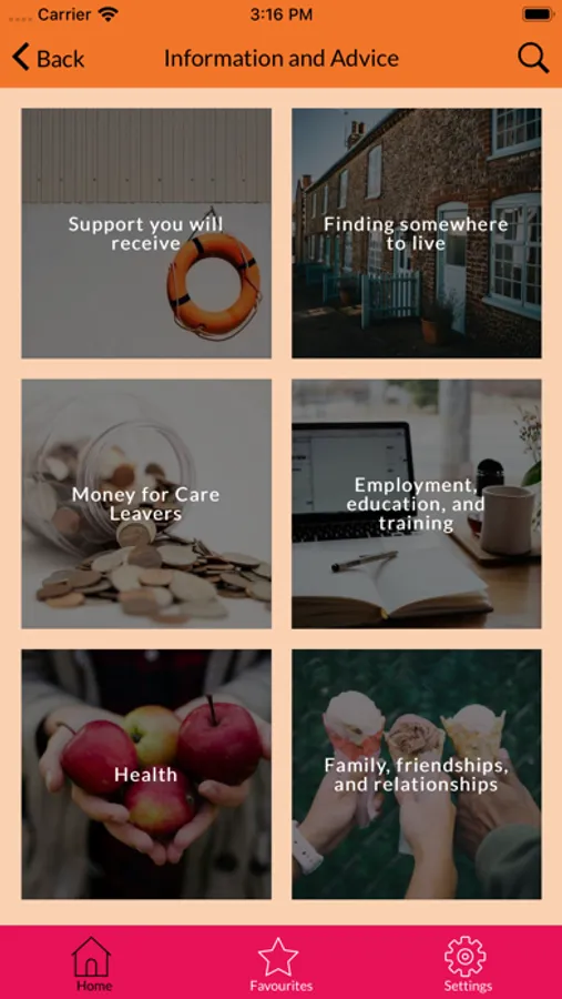 - Information pages on a range of different subjects.