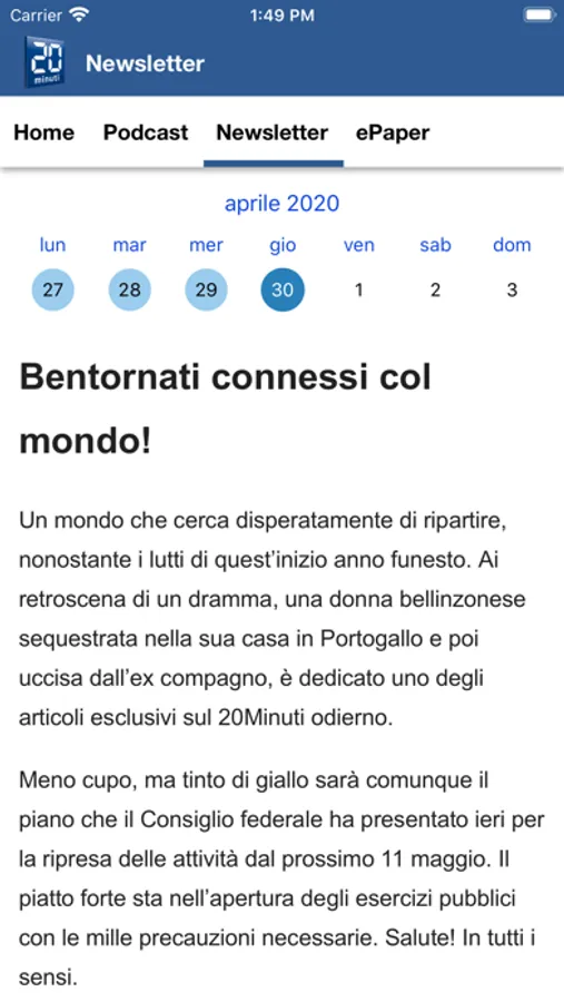 My20minuti è un quotidiano ascoltabile su podcast e una newsletter interattiva.