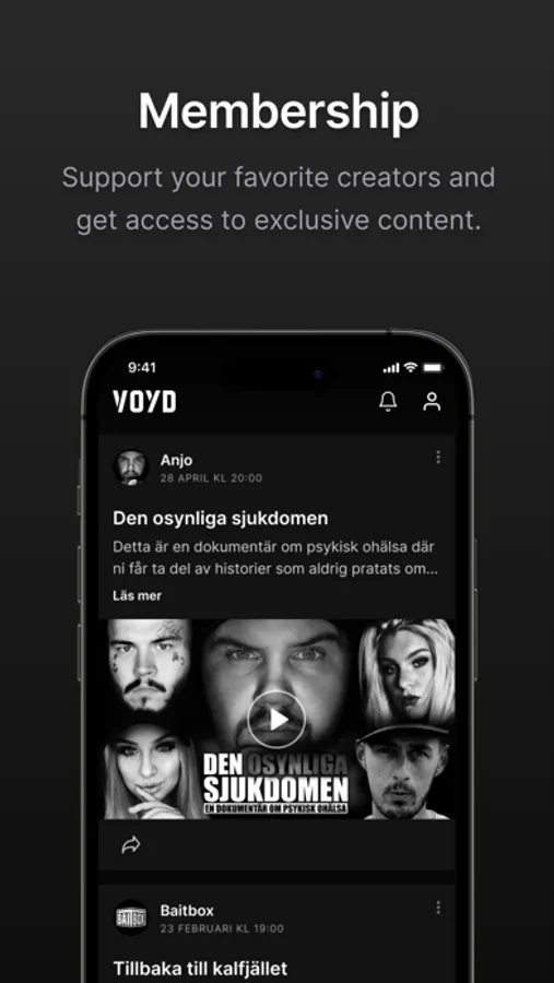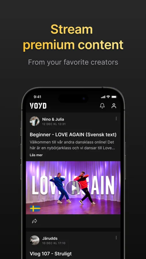 VOYD is a creator-made video platform where you can stream premium content from your favorite creators while also supporting them! See exciting documentaries, watch inspiring training videos or dance away to concerts on your mobile or TV.