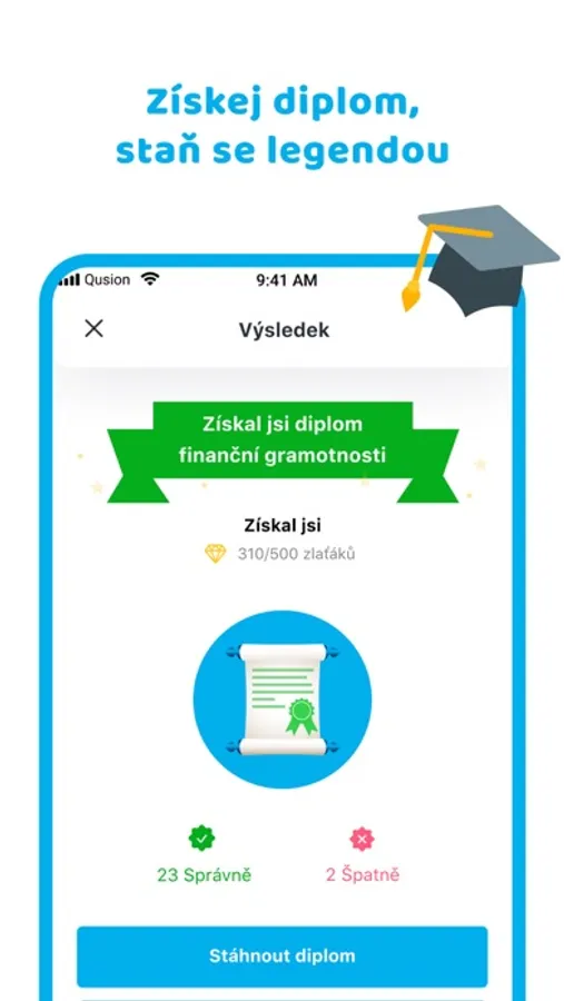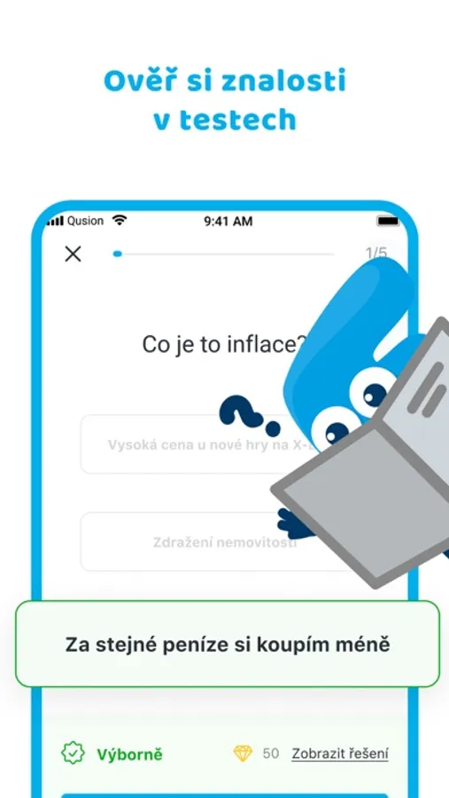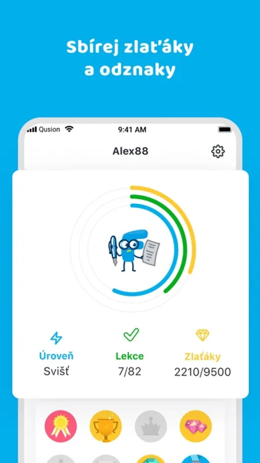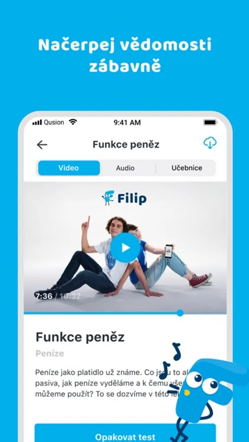 V appce tě čekají i testíky, se kterými si ověříš, zda vše chápeš. Za správné odpovědi navíc sbíráš zlaťáky a odznáčky. Postupně tak zvyšuješ svou úroveň a ze začátečníka se můžeš vypracovat až na legendu!