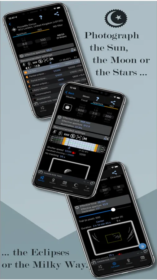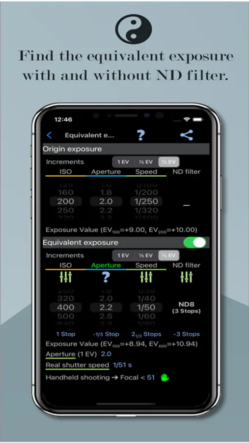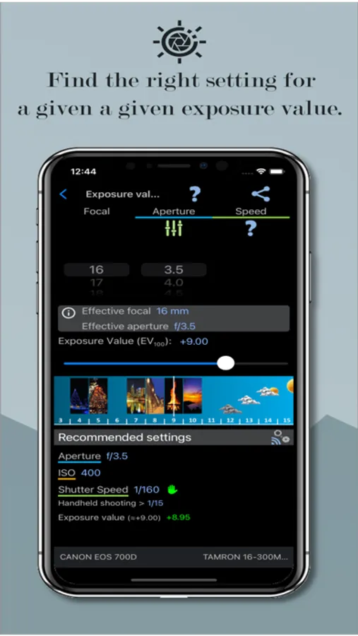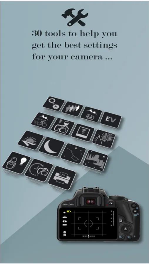 /! THIS IS NOT AN APPLICATION TO TAKE PHOTOS, BUT TO HELP TO PERFORM SETTINGS IN MANUAL MODE ON A CAMERA OR A DEDICATED APPLICATION.