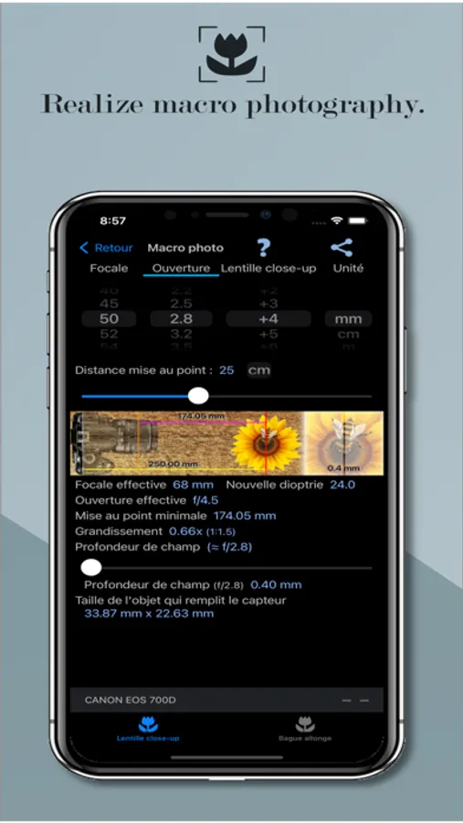 This application will help you to abandon the automatic mode of your cameras that does not do everything and control everything. For more experienced photographers, it can simplify the settings by doing the calculations for you.