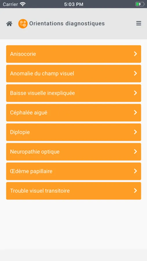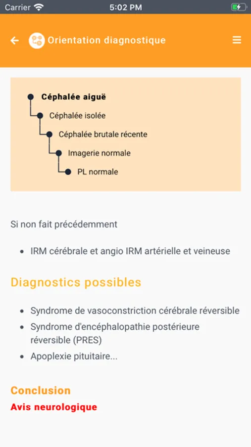 - les « Orientations diagnostiques » sont des arbres décisionnels qui permettent de guider la réflexion du professionnel de santé devant un signe ou symptôme, en lui proposant à chaque étape plusieurs possibilités de choix,