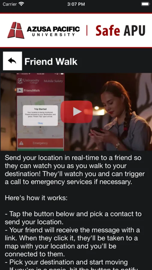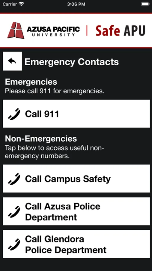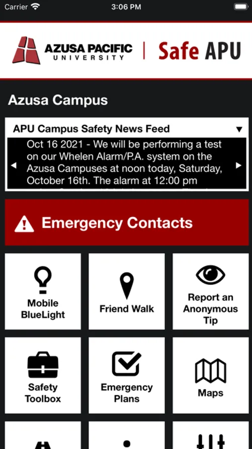 - Safety Notifications: Receive instant notifications and instructions from Azusa Pacific University safety when on-campus emergencies occur.