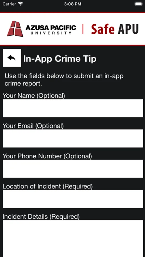 - Tip Reporting: Multiple ways to report a safety/security concern directly to Azusa Pacific University security.