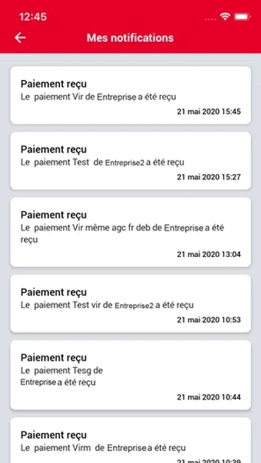 - Notification des demandes de paiement : réception de notification informant l’utilisateur du changement du statut de ses demandes de paiement.
