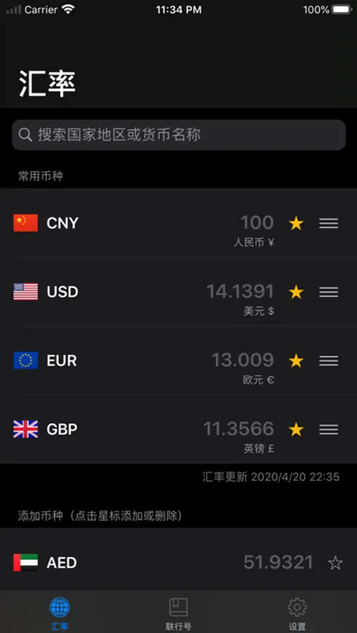 汇率通是一款极简的货币换算工具,你可以单手单页面完成搜索/添加/删除/排序,极速便捷。还可以查询联行号等银行码。