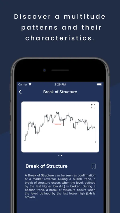 A trading pattern is made up of one or more candlesticks and gives an indication of the future direction of the market. Each of the patterns offers its own vision of the market. In Daily Candle you will find most of the patterns used by investors / traders to date. The application offers a brief description of the pattern as well as the potential indication it gives (Pattern Bullish or Bearish). You will also find a simplified graphic representation as well as a transcription taken on the real market.