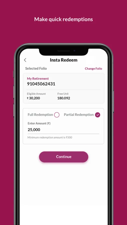 No Re-registration! Existing online investors of Axis Mutual Fund can use their current website credentials to manage their investments with Axis Mutual Fund, through the app. Investors can set mPIN & biometric verification for secure and easy access.
