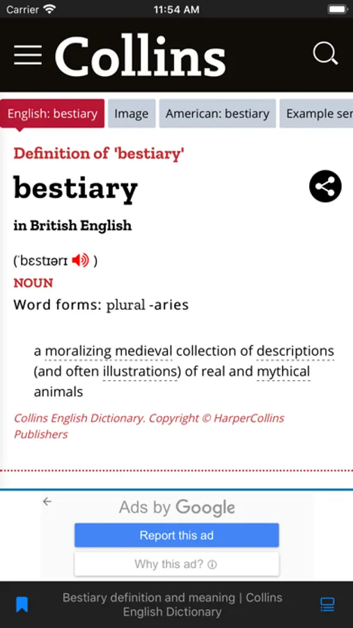 This is a non-commercial app and produced as totally free as follow as Collins Dictionary's guideline. There are some ads among contents. But those are not for me. and your data will not be provided for 3rd party advertiser. and Your bookmark data will be not saved on a server. Login feature would be used for only this purpose.