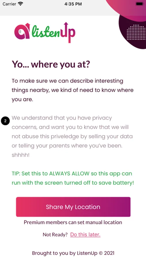 ListenUp - the app that tells you about where you are... Wherever you are! Made with pride in Arizona USA for tourism, information or just roaming entertainment. Over time, the app will learn your interests and curate the stories to your needs. Don't like what you hear? Give real-time feedback and be part of the story. You can even contribute stories of your own, or use your imagination to create location-based audio-novels, games, or share information with your audience. Best of all it works safely from your pocket into your airpods or earbuds, and is available in 22 languages.