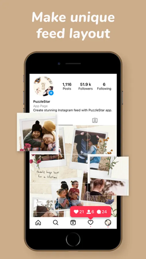 For Marketers: Drive more sales by creating an eye-catching Instagram profile. Use Instagram Puzzle Collage and tell your profile viewers all about your products in a better way.