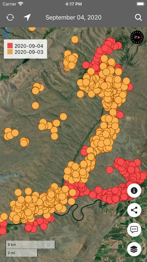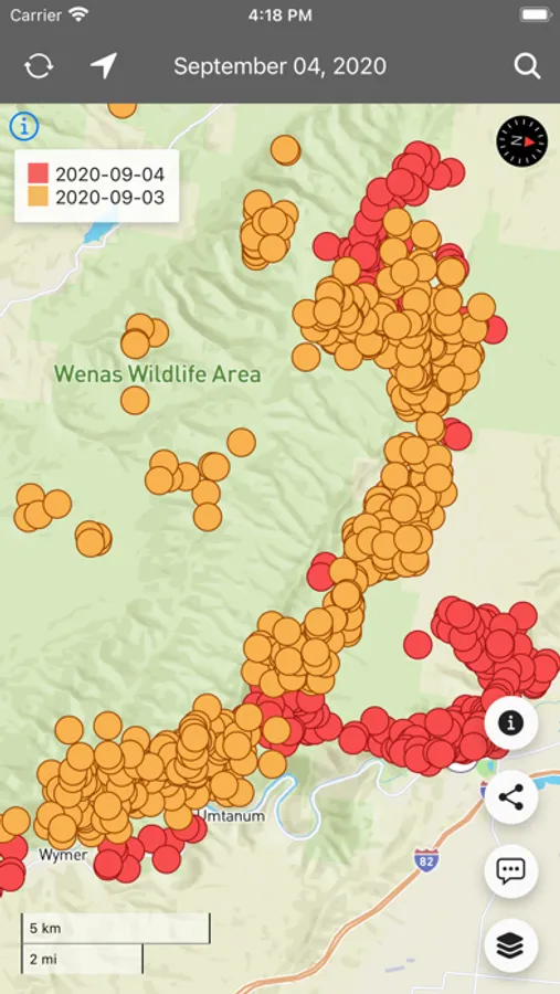 • Worried about friends, family, or property in a remote location? Use the search feature to check for blazing fires.