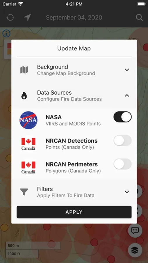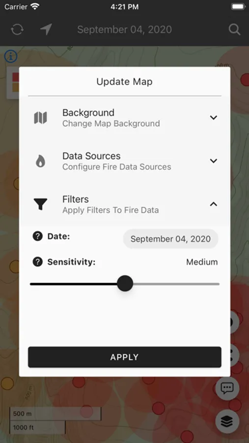 • Control the sensitivity of MODIS and VIIRS blazing fire detection filters yourself.