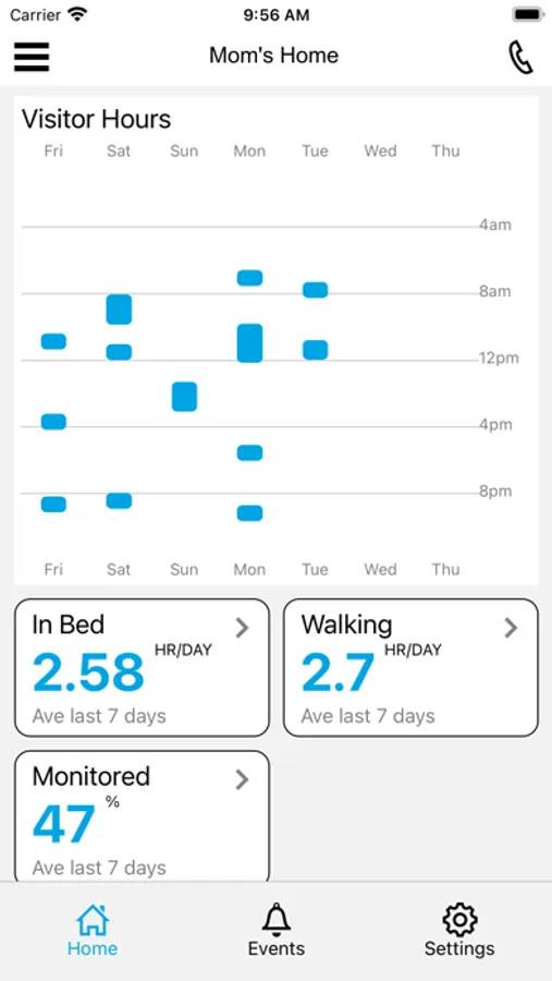 The Chirp app allows you to setup and monitor Chirp Smart Home Sensors. Chirp allows you to remotely monitor the well-being of aging adults. It’s unobtrusive and low-effort for the care recipient and tracks their mobility, detects visitors, and looks for emergency events such as calls for help.