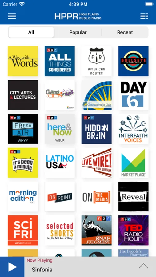 • Listen to live streams from HPPR even while traveling! Start the app and your favorite station starts playing.