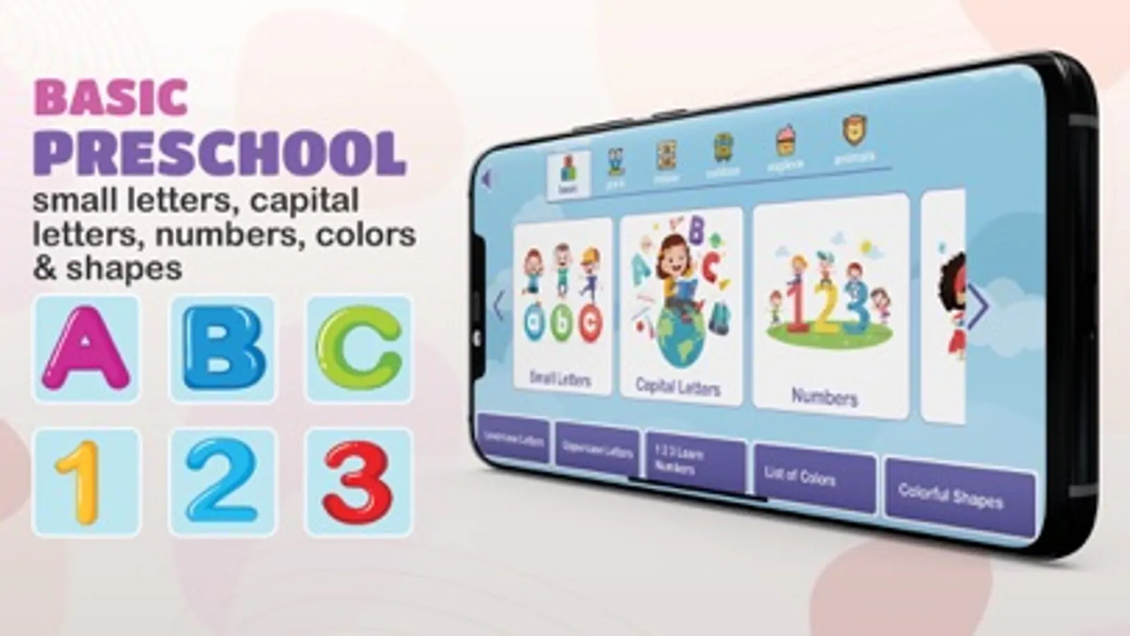 There are thirty-two categories of different things your preschool kids will learn through verities of gameplay and activities as follows: