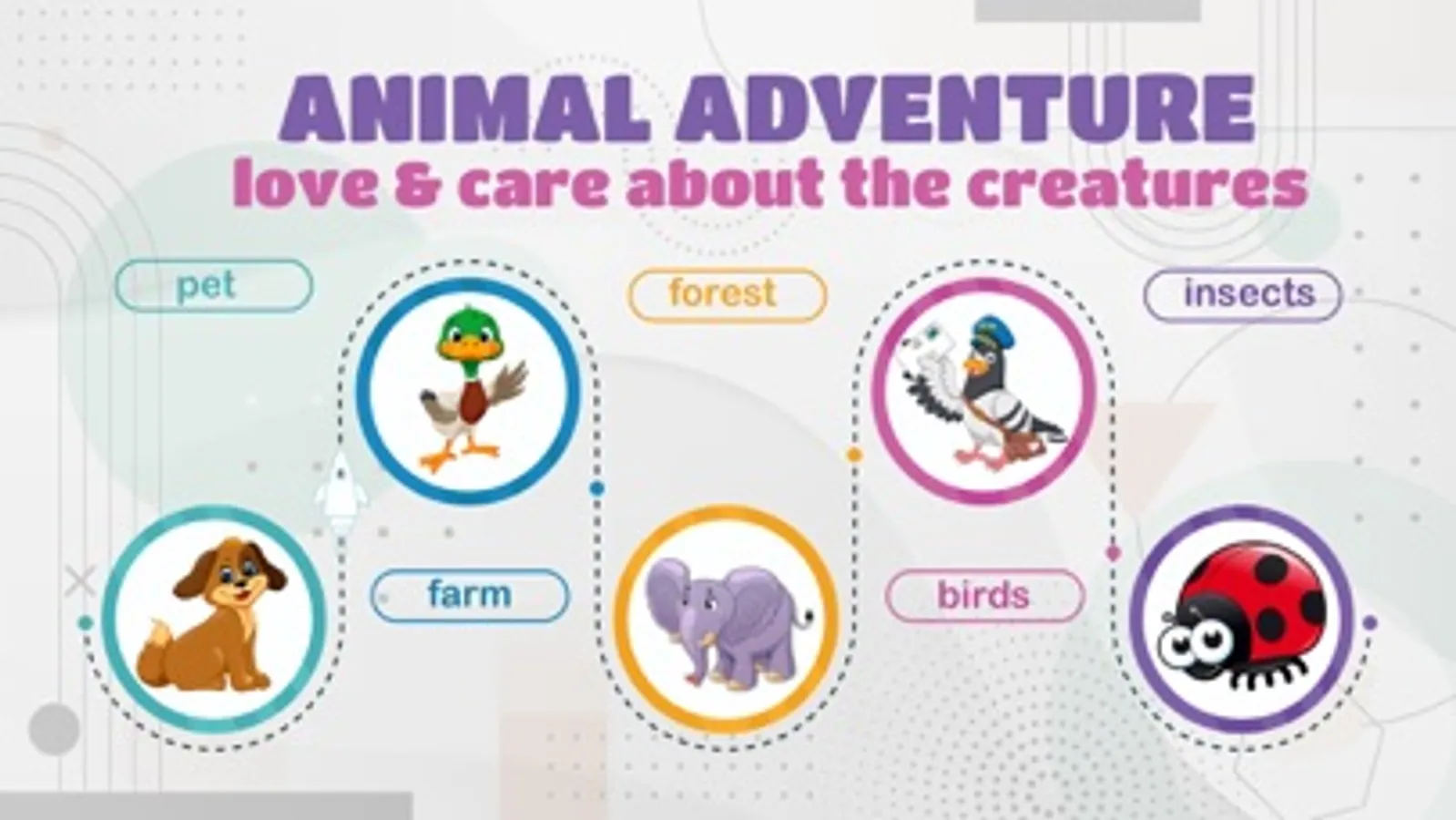 Pet Animals, Farm Animals, Wild Animals (Forest Animals), Sea Animals, Bird and Insects.