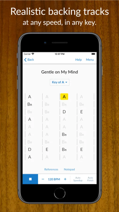 Strum Machine is a subscription-based app that will play any chord progression, in any key, at any speed. It's the only backing-track app built specifically for players of bluegrass, old-time, and fiddle tunes.