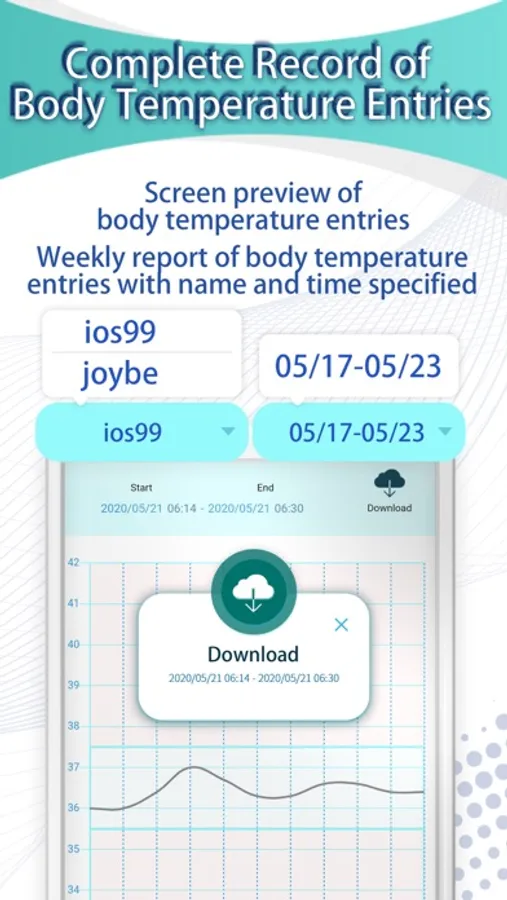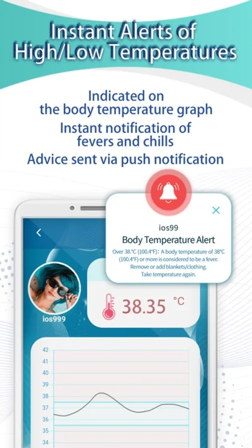Provides real-time monitoring of your body temperature along with a chart to keep track of changes in temperature over time.