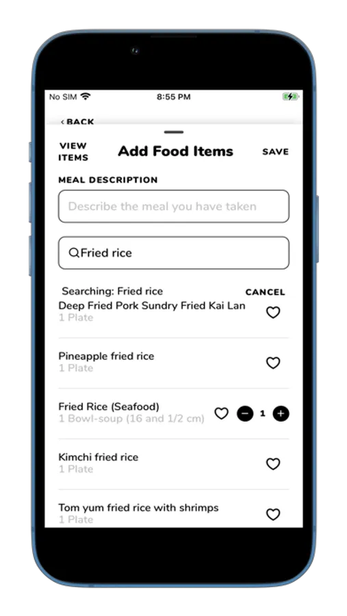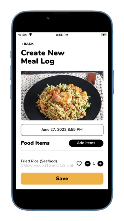 • Save frequently used food items or meals.