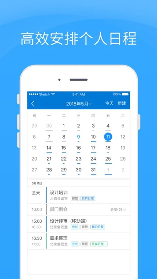 - 日程:便捷发起日程邀约,急速查看会议室忙闲,智能日程提醒。