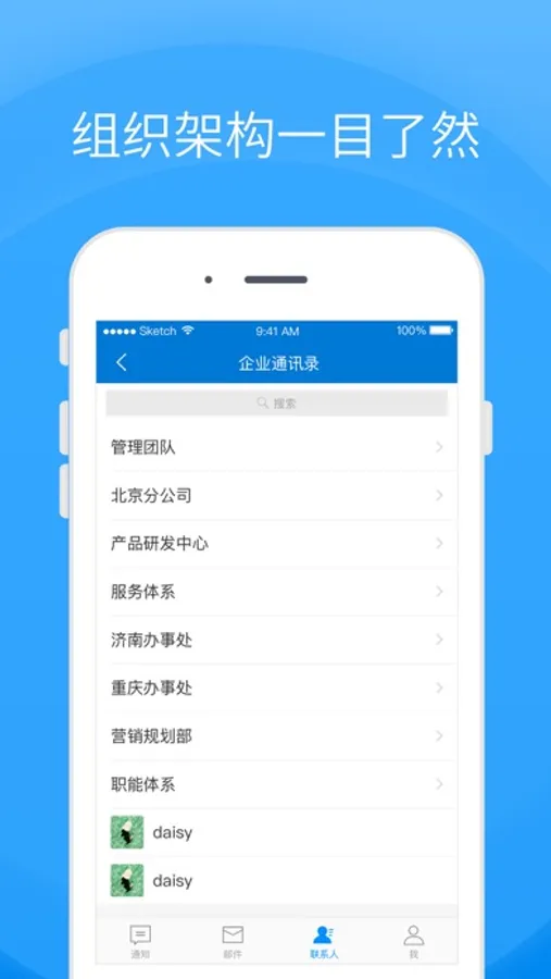 - 企业通讯录:清晰查看组织架构,快速方便找到相关同事。