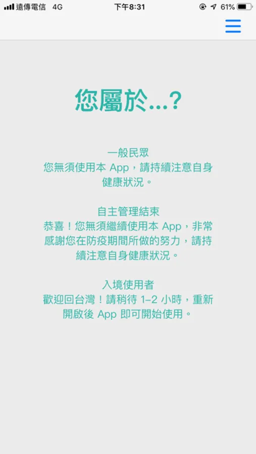 包含入境檢疫表、健康回報、GPS輔助定位、就醫資訊等...