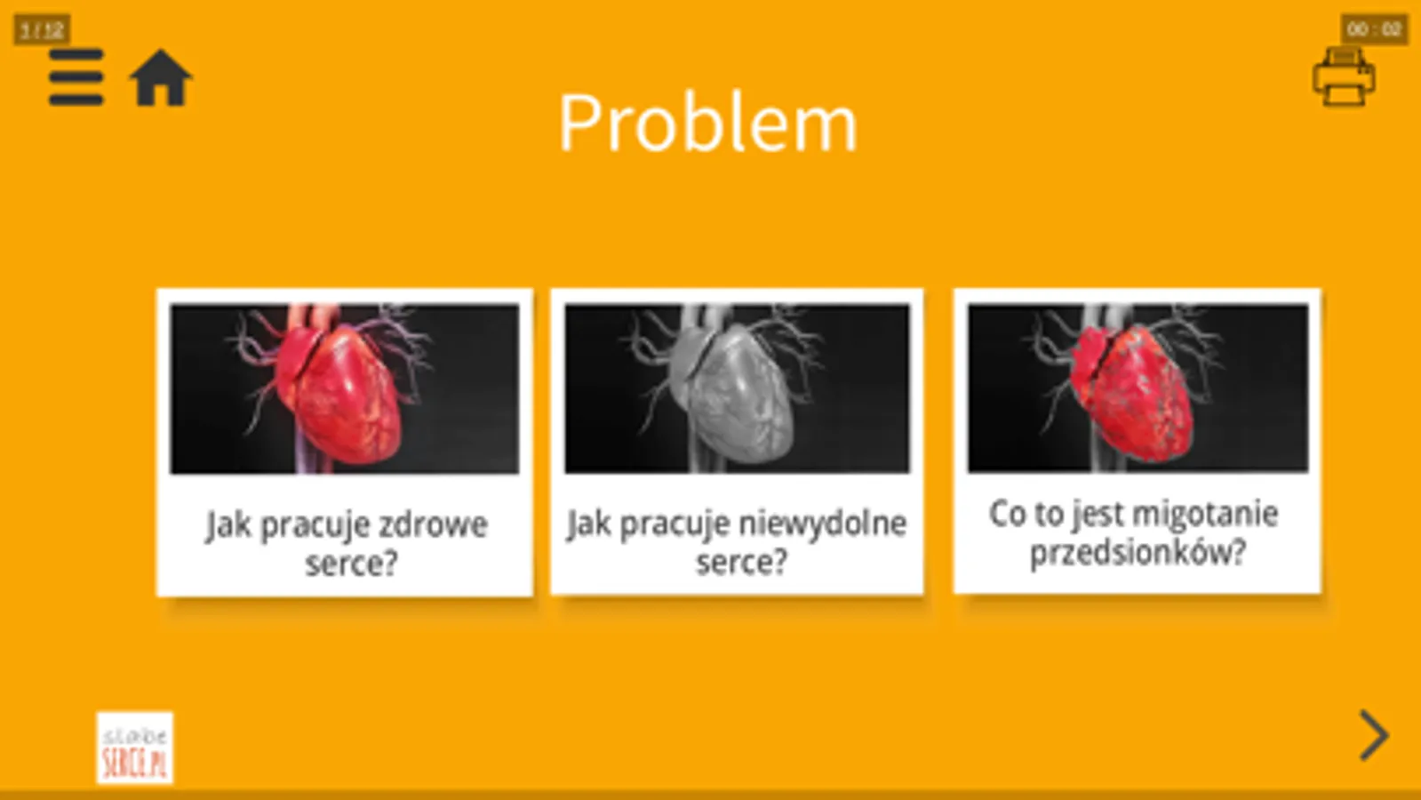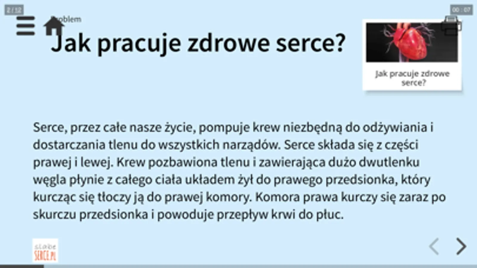 Słabe serce – aplikacja edukacyjna przeznaczona jest dla pielęgniarek-edukatorek prowadzących wizyty edukacyjne z osobami z niewydolnością serca znajdującymi się na oddziałach szpitalnych. Celem prowadzonych rozmów jest zwiększenie wiedzy i świadomości pacjentów.