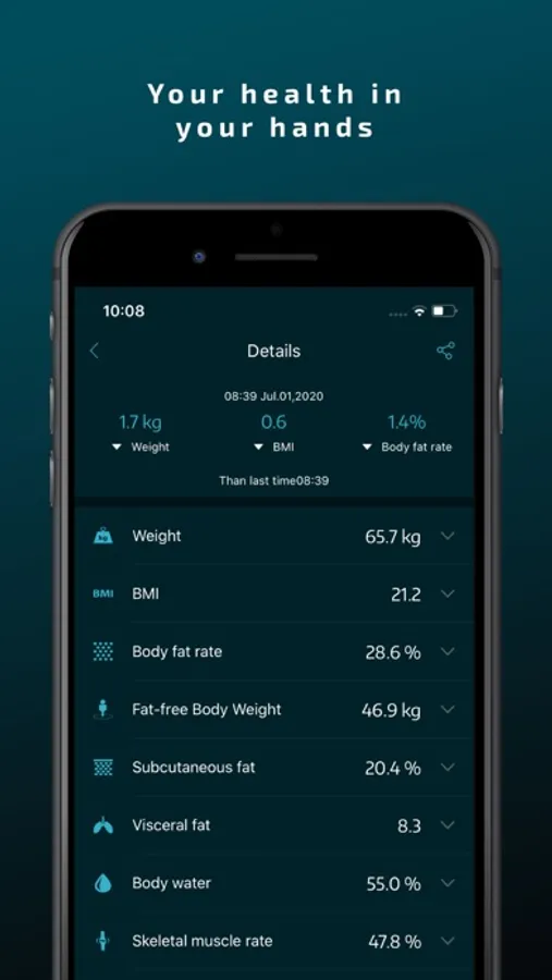 You will be able to connect your smart scale with your Smartphone. It allows you to view different body parameters according to the characteristics of the scale, allowing you to track the data obtained during the measurements on different days through graphs and data stored in the app. This way, you will be able to check the evolution of weight, body mass, fat index and muscle among other parameters.