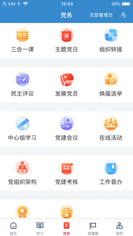 党建圈——各个党组织通过党建圈实时动态发布支部活动情况,提供展现支部风采的窗口,增进各个支部之间的交流学习。