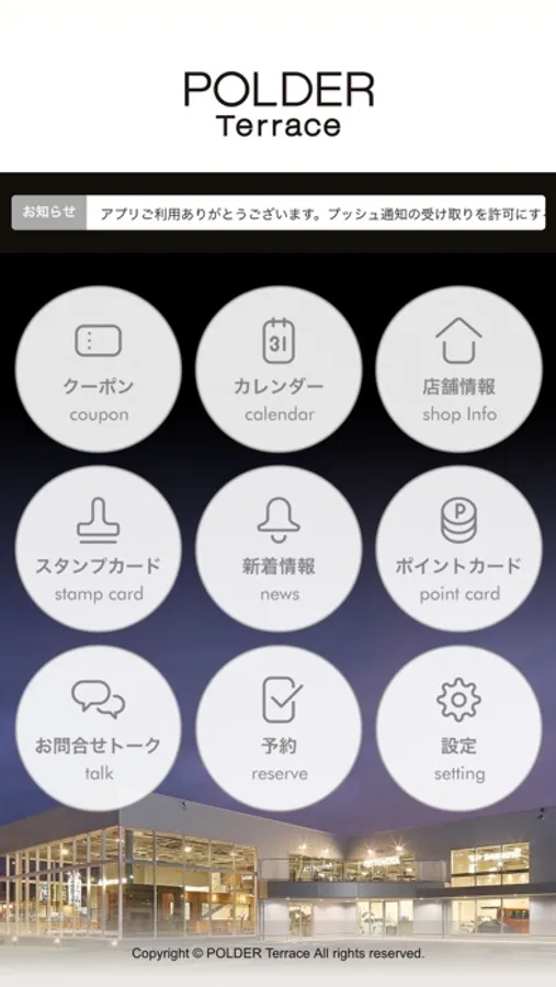 POLDER Terraceからのお知らせやアプリ会員限定のお得情報がアプリに届きます。