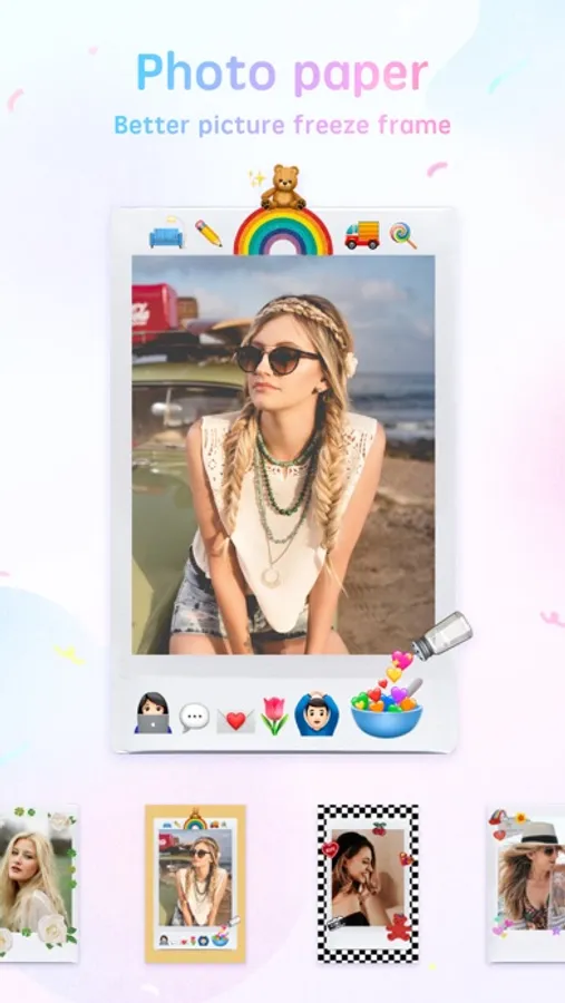 Gujicam supports a variety of personalized editing: doodling with the brush tool、creating new ways to play photo paper,DIY high-quality "Polaroid" photos;Create your own camera skin with cute stickers. Add emoji to record your mood and quickly view the classified memories.