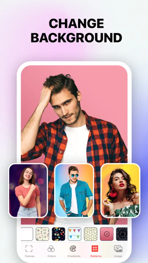 • Simple colors, gradient colors, and cool patterns: Choose from a range of background colors and patterns to make your images pop.
