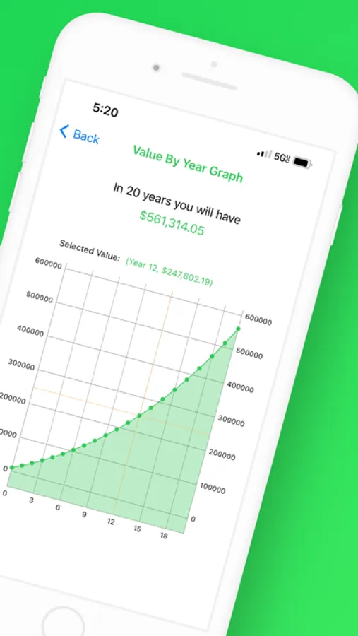 - Interactive graph of investment value over time