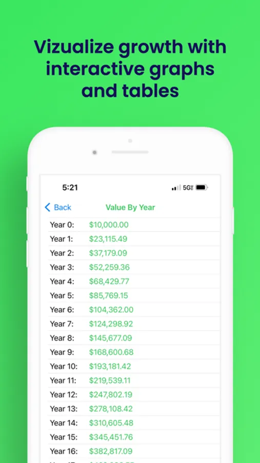 - Table display of investment value by year