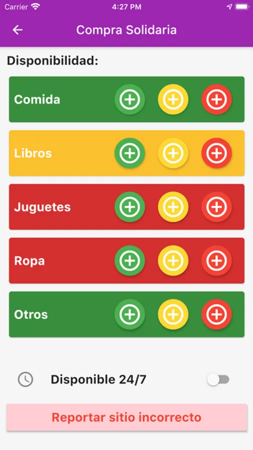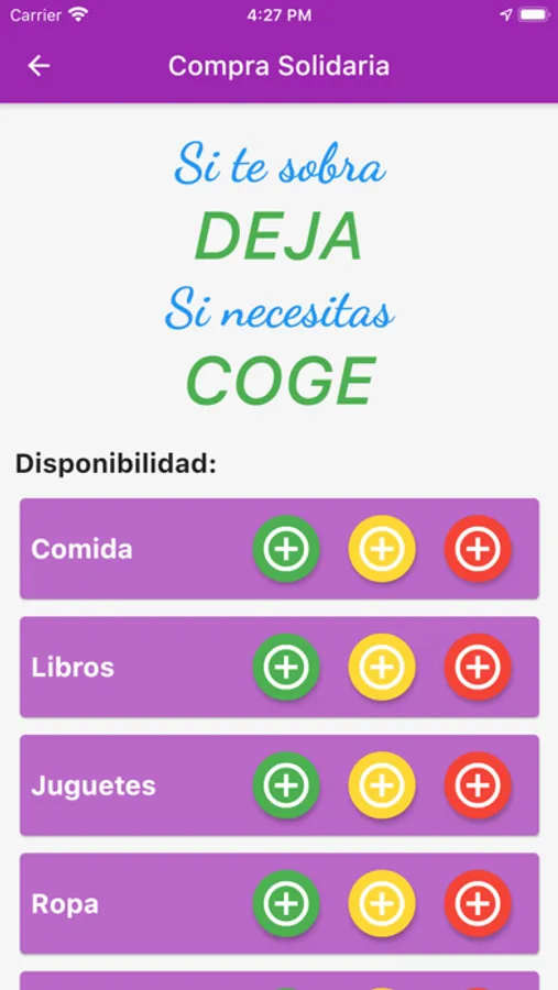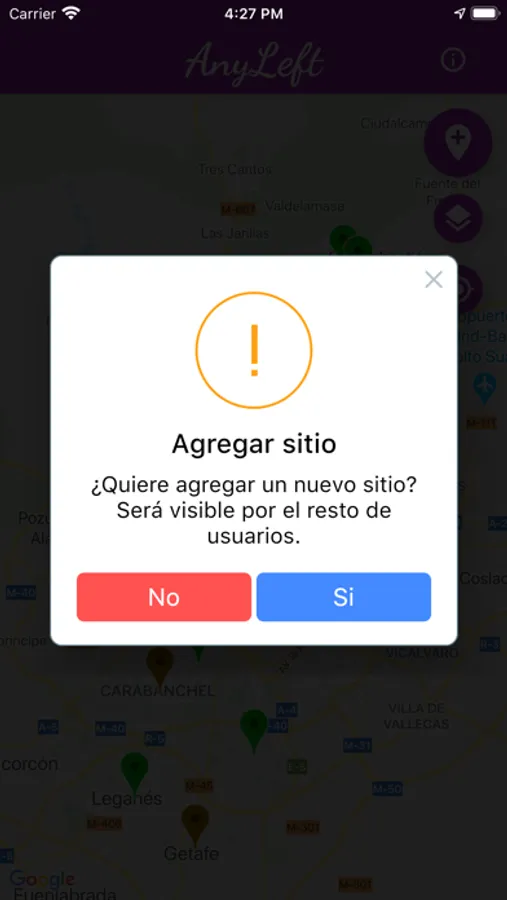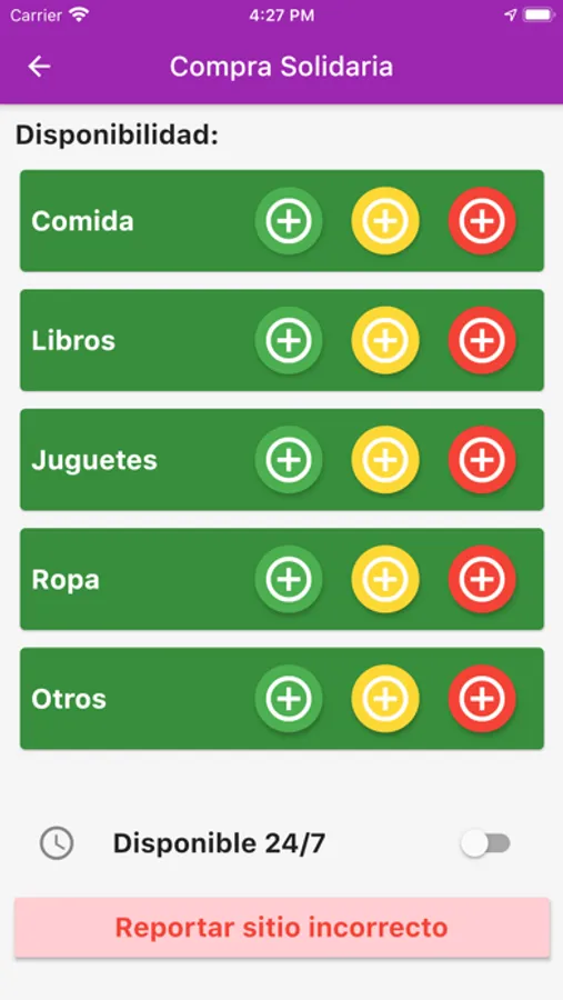 Pulsando sobre cualquier punto de AnyLeft puedes modificar la disponibilidad de cada uno de los productos para informar a los usuarios de los lugares a los que pueden acudir las personas que necesitan que les falta productos y los lugares que disponen de donativos para que los más necesitados puedan recogerlos.
