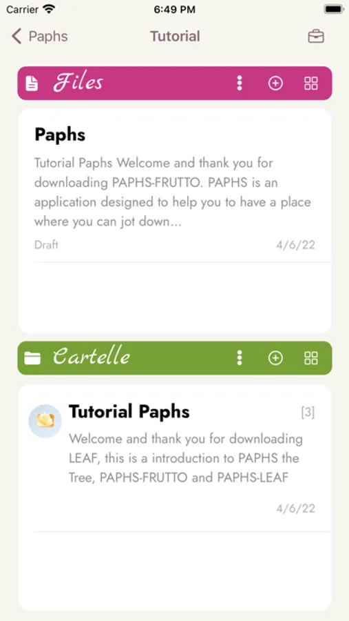 Paphs is the full version of this concept and like a tree branches into two minor apps Frutto and Leaf.