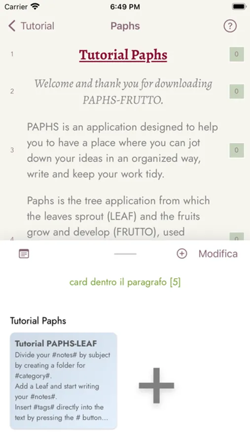 Paphs-Frutto is the juicy part, the result of your work, which allows you to write your story, report or simply take notes.