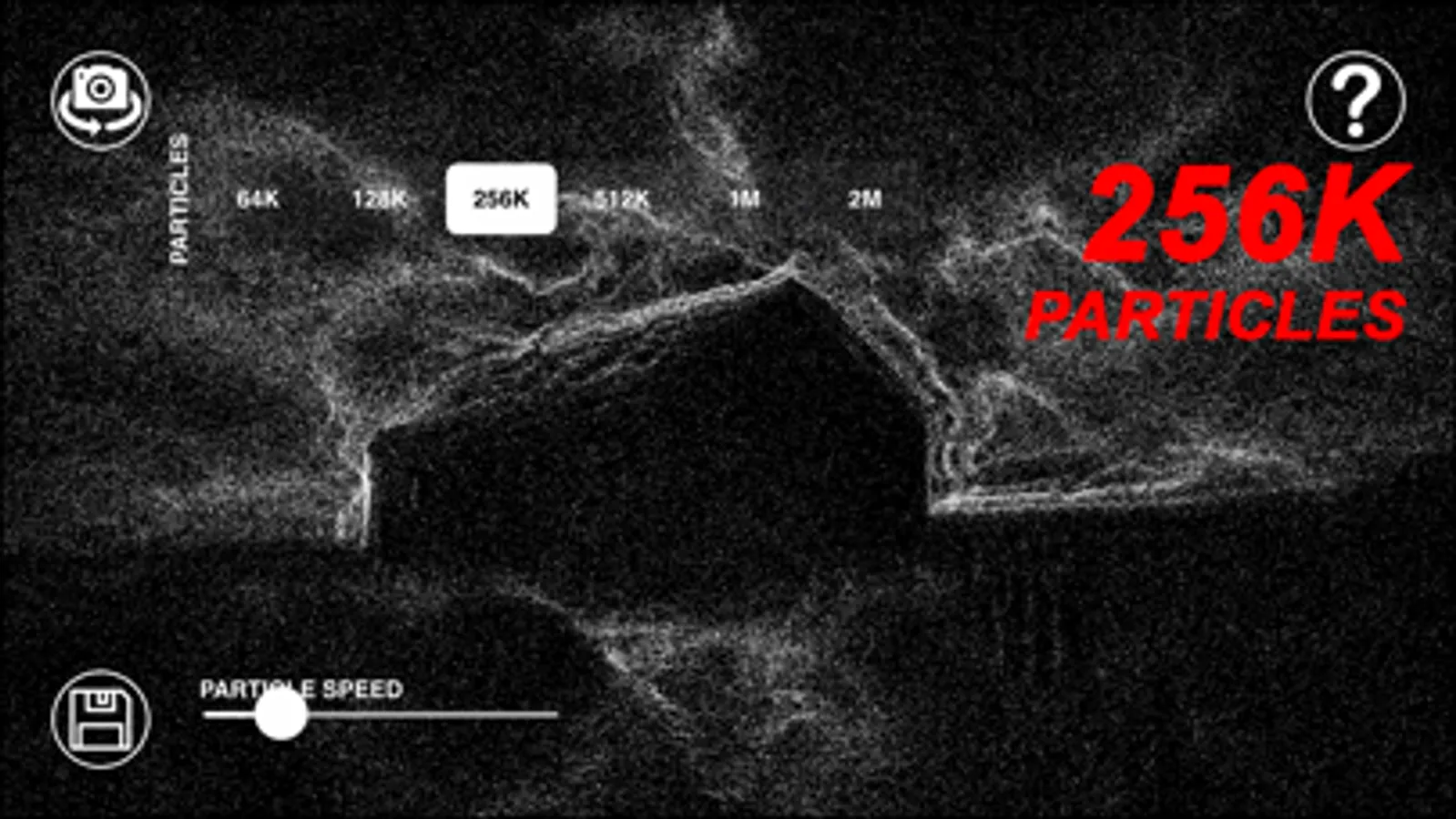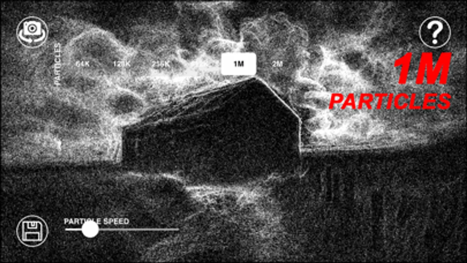 This app creates ghostly atmospheres. Photograph or film everyday objects and experience the chaotic world of flowing particles. Everything looks mysterious and hazy, as if it weren't real. But still it is there.
