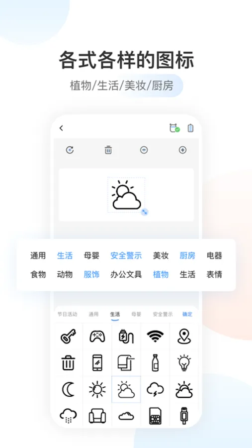 2.多种素材任意组合:可选择个性字体、图标库、边框、涂鸦、符号等设计素材,做个生活的小艺术家。
