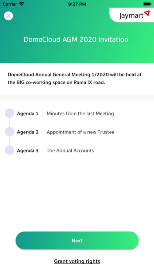 AGM voting is one of JBP (Jaymart Blockchain Platform). We're the very first online AGM voting that complies with regulations in Thailand.