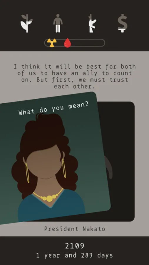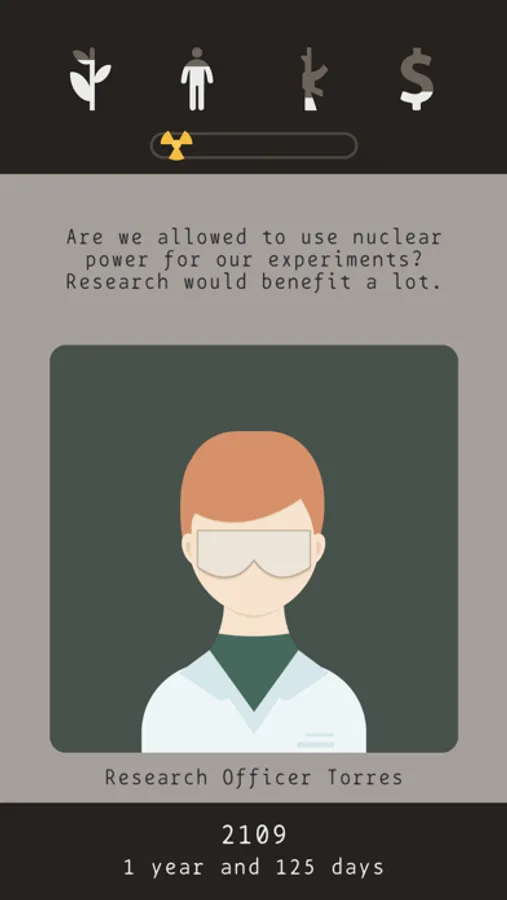 With a simple swap of your finger, left or right, you’ll be able to decide of this Nation’s destiny, taking hard decision about different quests and problems, that will be brought to your presidential attention. Be careful though: leading has never been easy and it will be even more challenging in a similar world. Something mysterious has thrown the whole future humanity in a deep confusion, causing a continuous stream of events as wars, illness, famine. No one seems to recall what started this all, no one seems to know anything about the odd events that keeps involving the planet, no one can explain why you seem to rise every time someone tries to keep you down.
