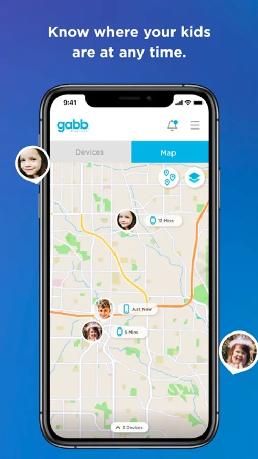 With the MyGabb app, you can quickly call and find all of your Gabb Wireless phones. Once set up, you'll be able to check the location of each phone with a simple tap. You can name each phone, manage your account, and access helpful support resources.