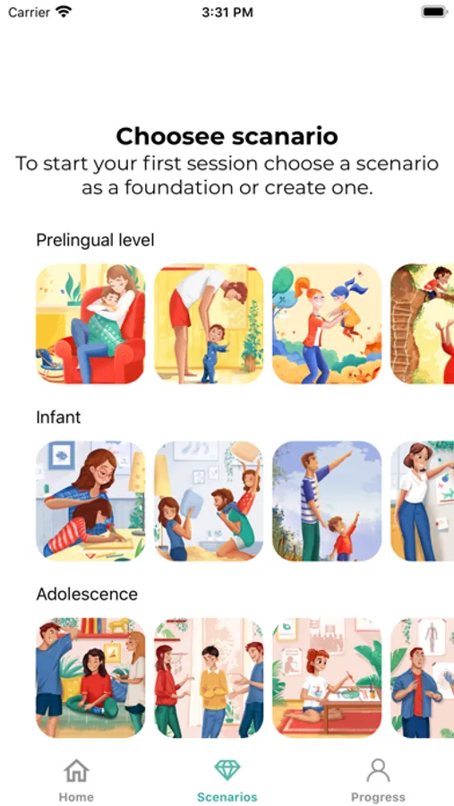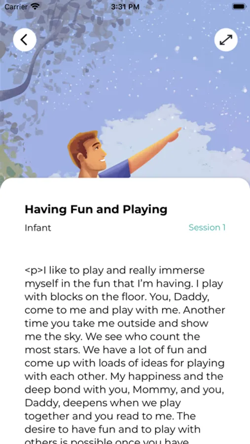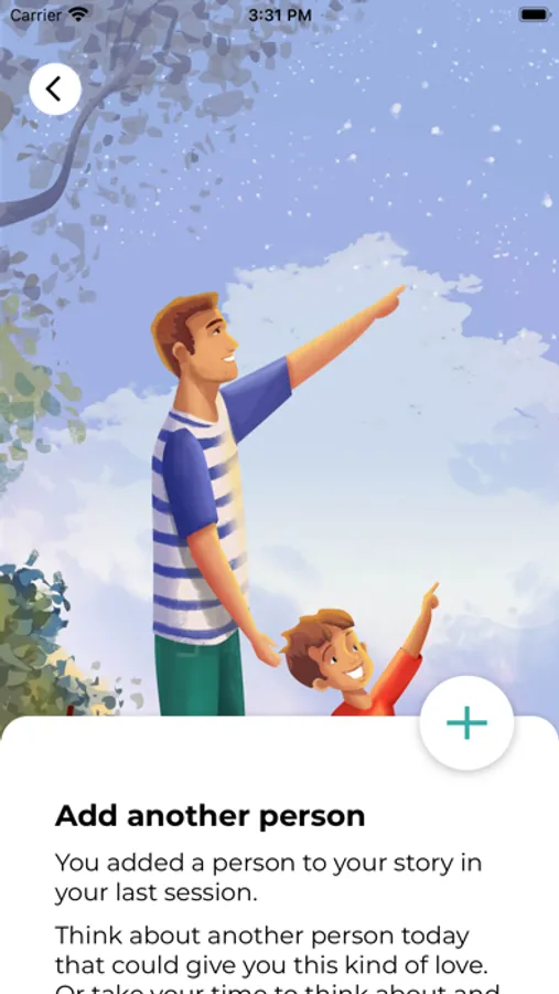 happy childhood", the app offers 15 topics related to childhood that play a formative role in a person's