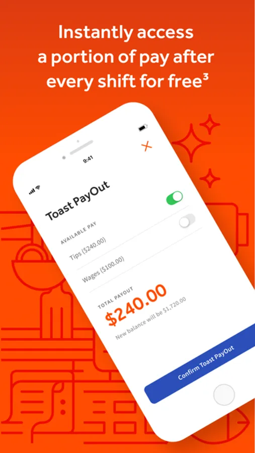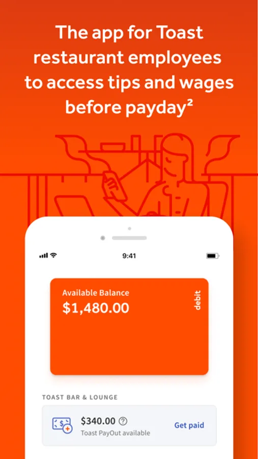 Take control of your finances, and say goodbye to waiting between paydays. Download the MyToast app to order your Toast Pay Card and get instant access to a portion of your tips and wages, for free.(2,3)